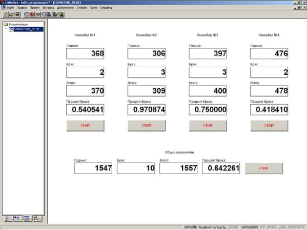 В качестве замечания по работе стоит сказать о том, что данное упражнен е содерж т в себе модель-имитатор конвейера. Если применять такую программу на настоящем конвейере, то необходимость ниев такой программе отпадает. И одним из способов проверки работоспособность пр ложен я при отсутствующем объекте является созда-