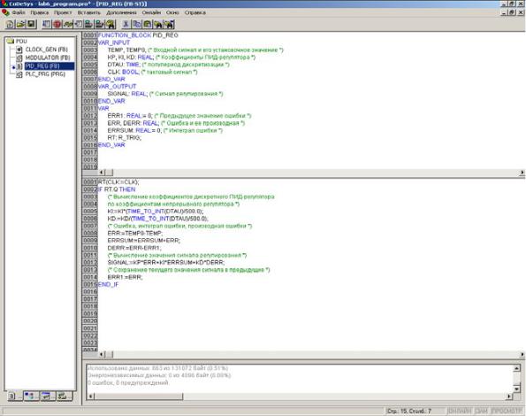 Алгор тм ПИД-регулирования можно реализовать на языке ST, |