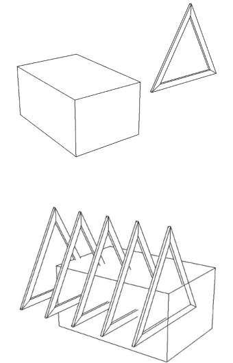 нам. Командой «Spacing Tool» сделать пять копий примитива «NGon», указав верхние вершины длинной стороны примитива «Box» в качестве на-