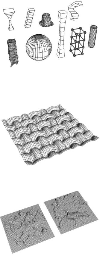 следнему объекту поверх модификатора «Mesh Smoth» применить модификатор «Optimize». Изменяя параметры модификаторов, познакомиться с возможными вариантами трансформаций (рис. 3.3).