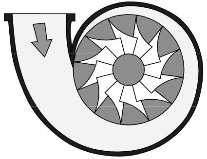 Турбокомпрессор любого типа состоит из вращающегося лопаточного аппарата – рабочего колеса, в котором от внешнего источника (двигателя, турбины, электродвигателя) рабочему телу (газу) сообщается энергия. Неподвижные аппараты (диффузоры, спиральные камеры) предназначены для изменения величины и направления скорости потока и давления. Сжатие газа в каналах рабочего колеса происходит в результате силового воздействия лопаток на поток газа.