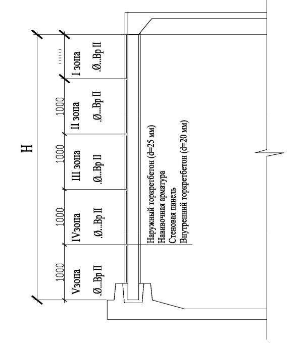 Рис. 25. Армирование стенки резервуара предварительно – напряженной