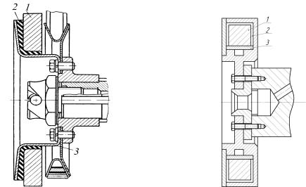 Маховик (диск) 1 (рис. 5.3, а) соединен с диском 3 упругим резиновым слоем 2. При возникновении крутильных колебаний маховик 1 скручивает и раскручивает резиновый слой 2. Часть энергии возмущающих моментов поглощается внутренним трением резинового слоя. Данная система «расстраивает» возникшие крутильные колебания, уменьшает опасную амплитуду резонанса.
