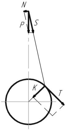 оси кривошипа (К) и силы (Т), действующей перпендикулярно к силе