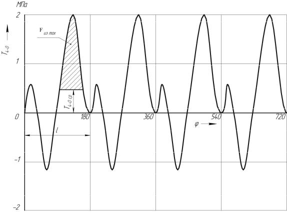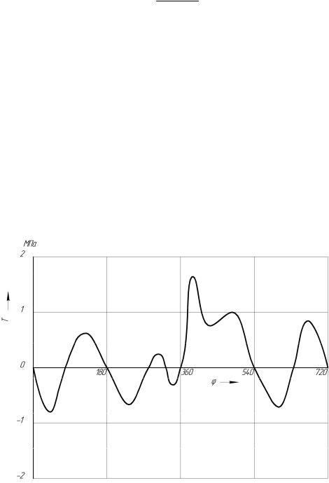 Для определения LИЗБ многоцилиндрового двигателя строят график набегающего крутящего момента (МКР). Для этого необходимо знать изменение удельной касательной силы Т (Н/м2) или МКР Т Fn R, (Н·м), в зависимости от угла поворота коленчатого