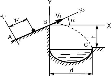 Вариант 12. Дано: α = 30о; Р = 0; l = 40 м; VB = 4,5 м/с; h = 1,5 м. |