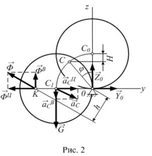 скорости. Определить реакцию оси диска в тот момент, когда центр тяжести диска и его ось вращения лежат в одной горизонтальной плоскости, и равнодействующую сил инерции в этот момент.