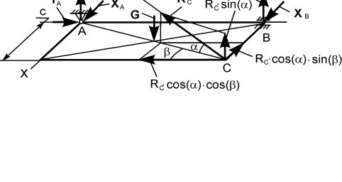 Реакцию RC·sin(α) параллельно оси AZ; реакцию RC·cos(α)·sin(β) параллельно оси AX; реакцию RC·cos(α) cos(β) параллельно оси AY.