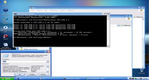 10. Проверяем соединение командой ping. Для этого на компьютере А нажимаем комбинацию клавиш Windows +R в появившемся окне пишем cmd, нажимаем Enter. Затем прописываем команду ping 192.168.1.3 (адрес компьютера Б). Начнется обмен пакетами, если все пройдет успешно, то отправленных и полученных пакетов будет по 4 шт.