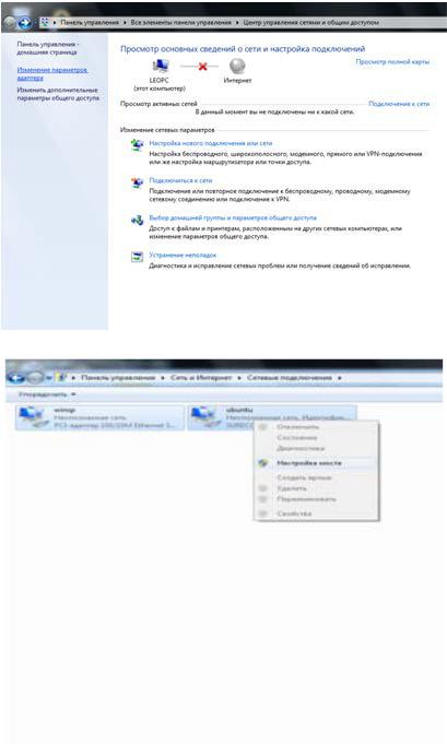 3.На экране отобразится два подключения WinХР и Ubuntu: на первом порту – WinХР, а на втором - Ubuntu. Объедините два подключения и кликните правой копкой мыши по одному из них. Нажмите «Настройка моста» (рис.3).