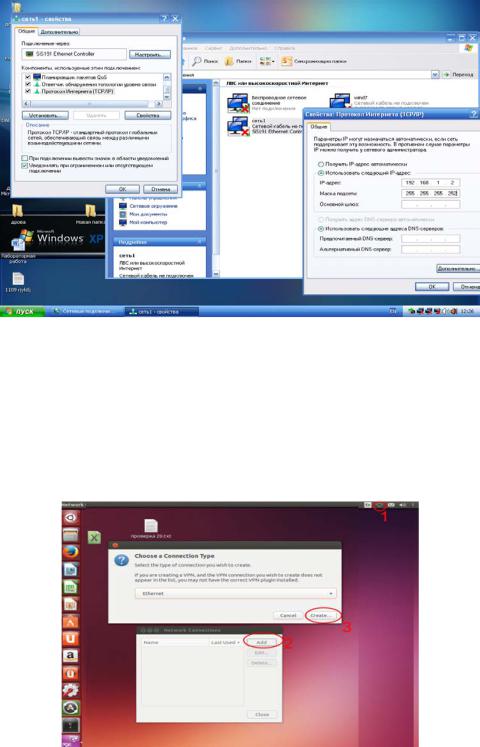 Следующим шагом будет настройка третьего компьютера – В. Нажмите в верхнем правом углу на значок подключений, затем нажмите на строчку “Edit Сonnections”. В появившейся таблице нажмите на “Add”. В следующей таблице задайте тип подключения. В системе Ubuntu по умолчанию настроен Ethernet, поэтому просто нажми-