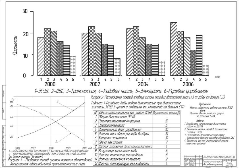 При анализе трудозатрат на обслуживание автомобилей с дизельными двигателями становится очевидным, что не все виды работ выполняются в полном объеме. При таком техническом обслуживании эти автомобили потенциально опасны для транспортного потока городов как по техническому состоянию, так и по экологическим показателям. Особенно остро стоит вопрос диагностирования дизельной аппаратуры иностранного производства. Наша диагностическая аппаратура не адаптирована к диагностике топливной аппаратуры иномарок. Следовательно, требуется разработка дополнительных узлов, а именно датчиков, которые позволяли бы использовать отечественную аппаратуру для диагностирования систем питания иномарок. Пример оформления «листа обоснования» при проектировании малых предприятий представлен на рис. 8.