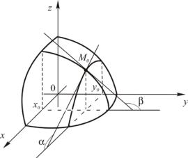 и β , которые образуются между осями координат Ox, Oy и касатель- |