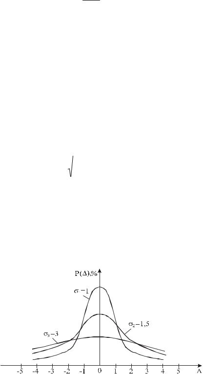 Среднее квадратичное отклонение определяет характер случайного распределения погрешностей. На рис.17 показаны зависимости плотности вероятности Р случайных ошибок от величины случайных ошибок при различных значениях .