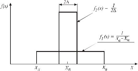 С информационной точки зрения интерпретация результата измерения состоит в том, чтобы область неопределенности простиралась от Хн до Xв и характеризовалась сравнительно небольшой плотностью распределения f1(x). После измерения неопределенность уменьшилась до