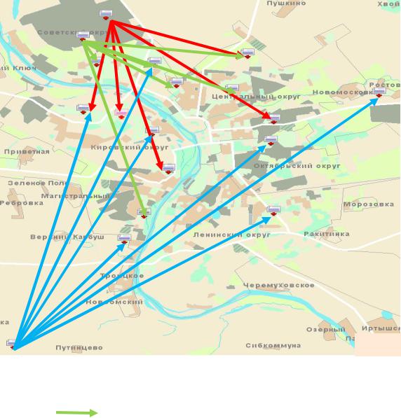 Маршрут перевозки груза – радиальный, отдельные ветви которого напоминают развозочный маршрут (рис. 1.17).