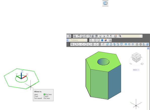 Выполнить 3D-объект шестигранной призмы со сквозным цилиндрическим отверстием, используя следующие операции твердотельного моделирования: