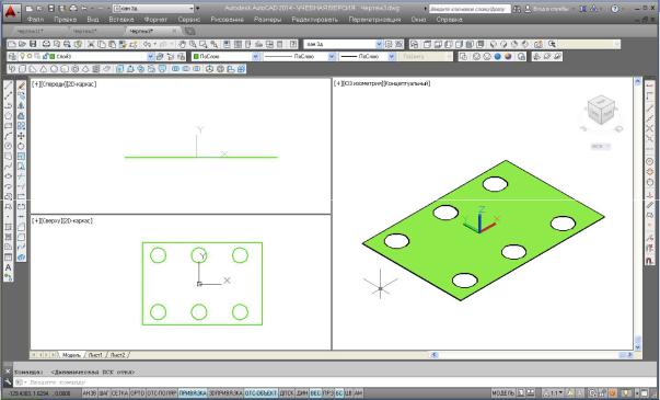 щью операций: Вид Видовые экраны 3 ВЭкрана. В командной строке выбрать расположение конфигурации: Правее.