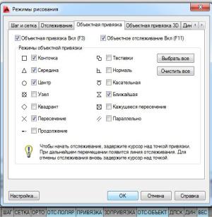 вязка в строке режимов. Выбор необходимых привязок выполняют в диало-