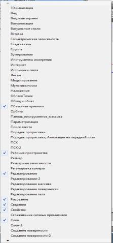 −на любой панели интерфейса вызывает список панелей программы AutoCAD (рис. 5);