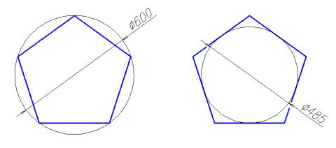 ружности, описанной вокруг многоугольника (рис. 16, а); опция Описанный вокруг окружности соответствует диаметру окружности, вписанной в много-