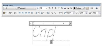Многострочный текст создается с помощью окна Формат текста, которое позволяет размещать текст в указанной области чертежа, вводить различные символы и изменять параметры текста при работе в окне. После вызова команды Многострочный… программа перечисляет текущие параметры: стиль,