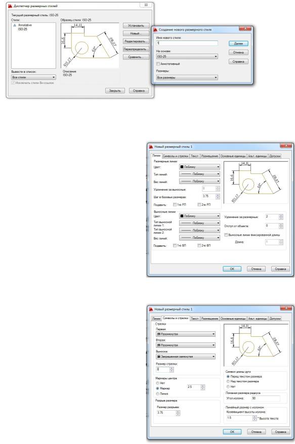 Формат (рис. 23). В открывшемся окне создают новый стиль размера на базе стиля ISO-25 нажатием кнопки Новый…. На запрос программы дают имя новому стилю, например 1, и нажимают кнопку Далее или клавишу Enter.