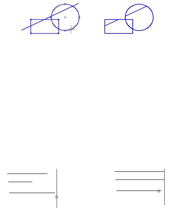 будет выбор объектов (по умолчанию), которые должны быть обрезаны по указанным границам. Объект указывают в той его части, которую необходимо обрезать. На рис. 37, а проиллюстрирован выбор границ обрезки, а на рис. 37, б – результат обрезки. Опция Отменить позволяет отменить только что выполненную обрезку; опция Кромка – изменить режим продолжения кромки до вообра-