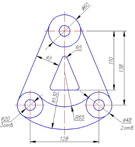 3.9.Выполнить сопряжение радиусом 65 мм двух нижних окружностей