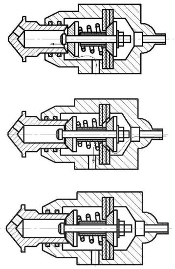 Рис. 3. Рабочие состояния блока клапанов пневматического усилителя: