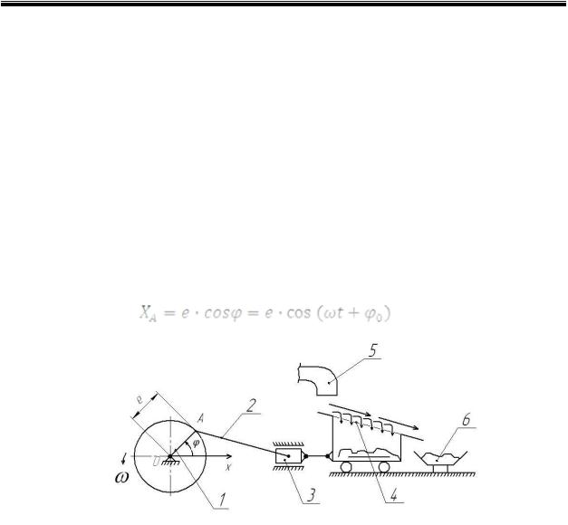 Проекция точки А на ось х будет определять величину перемещения виброгрохота 4 вдоль оси х (виброперемещение).