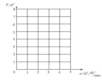 Рис. 44. Влияние частоты вращения вала n (об/мин) на нагрузку на подшипники вала F (кг),