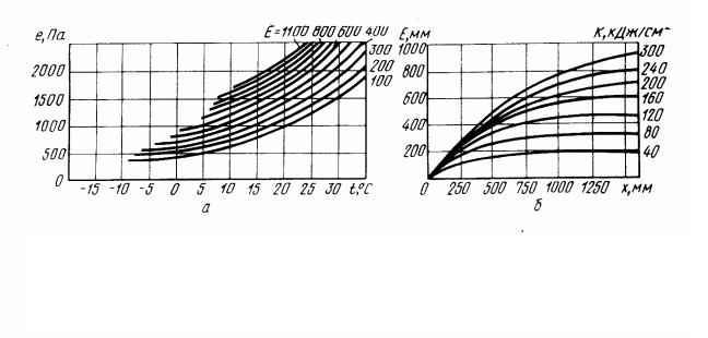 Рис. 9. Номограммы для вычисления среднемноголетнего годового испарения Е, мм: а) – по методу Р.А. Константинова (по среднегодовой температуре t (0C) и влажности воздуха е, Па); б – по методу М.И. Будыко (по среднегодовой сумме осадков х, мм, и радиационному балансу R, кДж/см2).