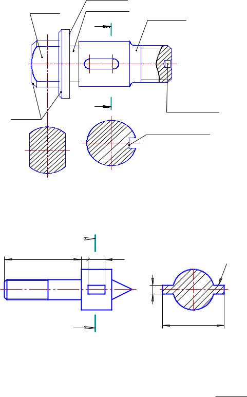 Шпоночный паз – конструктивный элемент для вставки шпонки. Отверстия центровые предназначены для удержания деталей при их обработке на токарных станках в специальных устройствах – центрах. Центровые отверстия являются элементами сугубо технологическ ми, х выполняют по ГОСТ 14034 – 74. Этот стандарт устанавливает прав ла зображения и обозначения центровых отверстий
