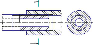 При изображении резьбового соединения в разрезе резьбу по длине соединения изображают по правилу изображения резьбы на