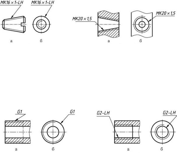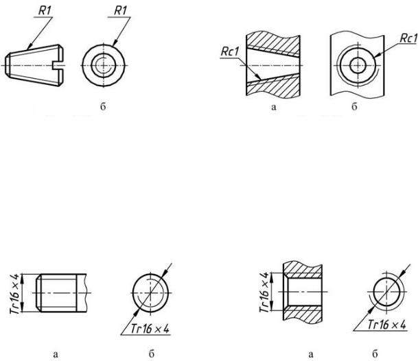 (ГОСТ 6211 – 81) состоит из буквенных обозначений R (наружная резьба) и Rс (внутренняя резьба) и диаметра резьбы в основной плоскости в дюймах (рис. 6.11 и 6.12). Варианты нанесения обозначения на рис. 6.10, а и 6.11, а предпочтительней.