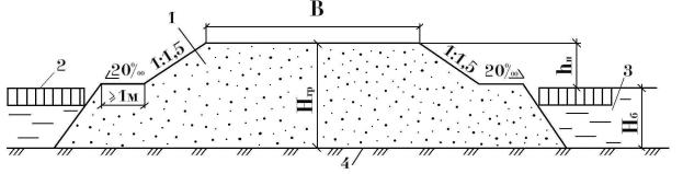насыпи понизу, м; bб – ширина берм для размещения защитных (на пе- |
