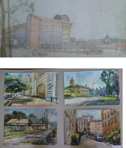 4. Выполнение панорамных зарисовок разными материалами.