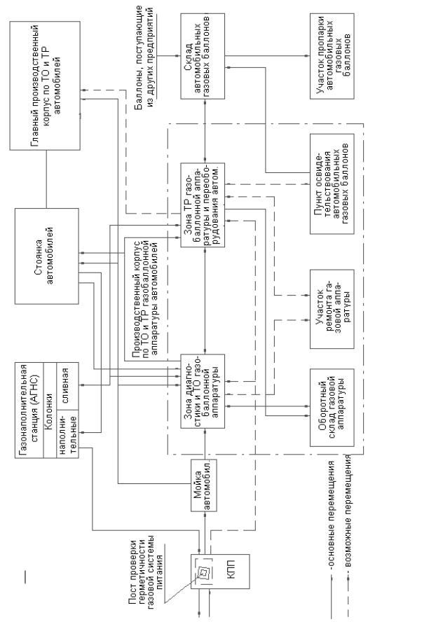 Рис. 7.1. Структурная схема комплекса для ТО и ТР газобаллонной аппаратуры автомобилей, работающих на сжиженном нефтяном газе