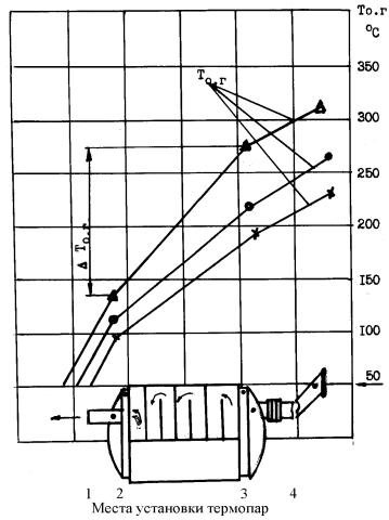 Эффективность подогрева газового баллона теплотой отработавших газов при движении их через утилизационный контур, расположенный сверху газового баллона и утепленный стеклополотном, была определена в процессе послепусковых прогревов двигателя автомобиля ГАЗ-53-07 на режимах холостого хода 1400, 1800 и 2600 мин-1 при температуре окружающего воздуха –26о С (рис.7.17). Эксплуатационные исследования подогрева газового баллона показали, что он обеспечивает большие величины перепада температур отработавших газов в утилизационном контуре (Тгсн=+130 оС), что свидетельствует о его высокой тепловой эффективности. При этом температура стенок цилиндрической части газового баллона под утилизационным контуром повышалась до 18…82о С при температуре окружающего воздуха –26о С.