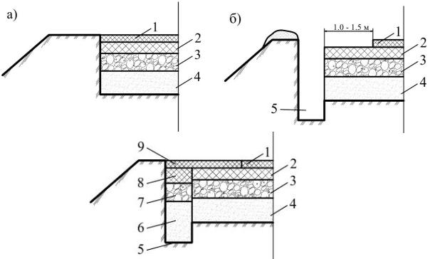 Наиболее сложной задачей при уширении проезжей части является надежное сопряжение существующей и уширяемой частей дорожной одежды. При выборе конструкции дорожной одежды на полосе уширения необходимо соблюдать ряд требований (рис. 38):