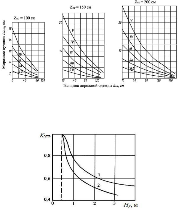 Для грунта II группы по степени пучинистости кривую II, а выбирают при 2-й и 3-й схемах увлажнения грунта ра очего слоя, кривую II, б – при 1-й схеме увлажнения грунта рабочего слоя
