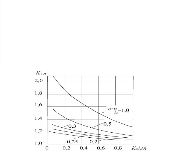 Рис. 10.3 Номограмма для определения коэффициента Квог, учитывающего накопление воды в местах изменения вогнутого профиля: