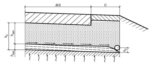 Во всех случаях полную толщину дренирующего слоя hп сле-