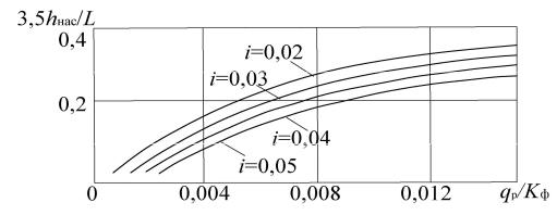 i– поперечный уклон низа дренирующего слоя; L – длина пути фильтрации; qр – расчетный объем притока воды, м3/м2 в сутки;