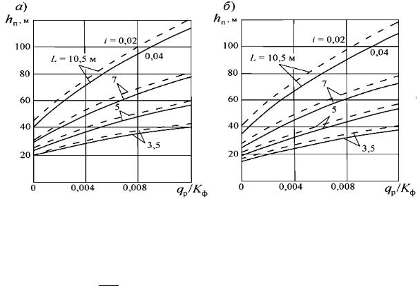 толщ ну слоя, полностью насыщенного водой hнас, устанавливают в завис мости от дл ны пути фильтрации L и расчетной величины притока воды qp.