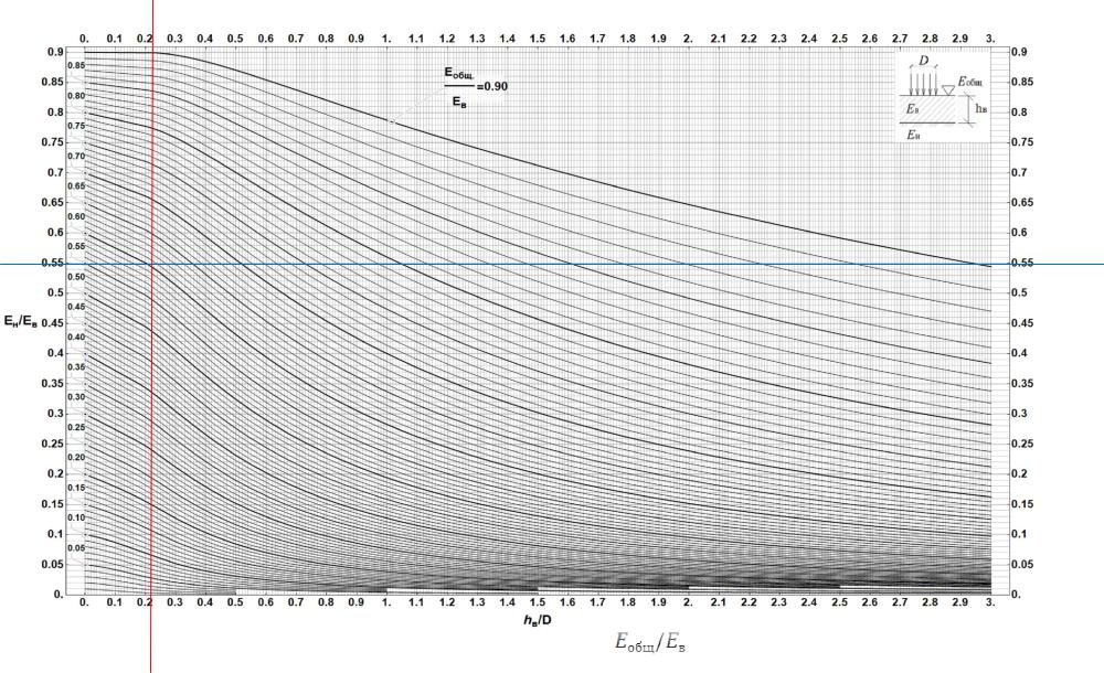 Рис. 5.3. Номограмма для определения общего модуля упругости Еобщ двухслойной системы