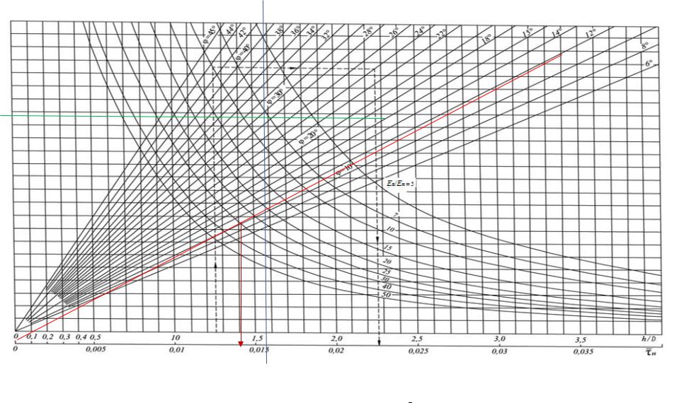 Рис. 6.1. Номограмма для определения активного напряжения сдвига н от временной нагрузки в нижнем слое двухслойной системы (при h/D = 0–4,0)