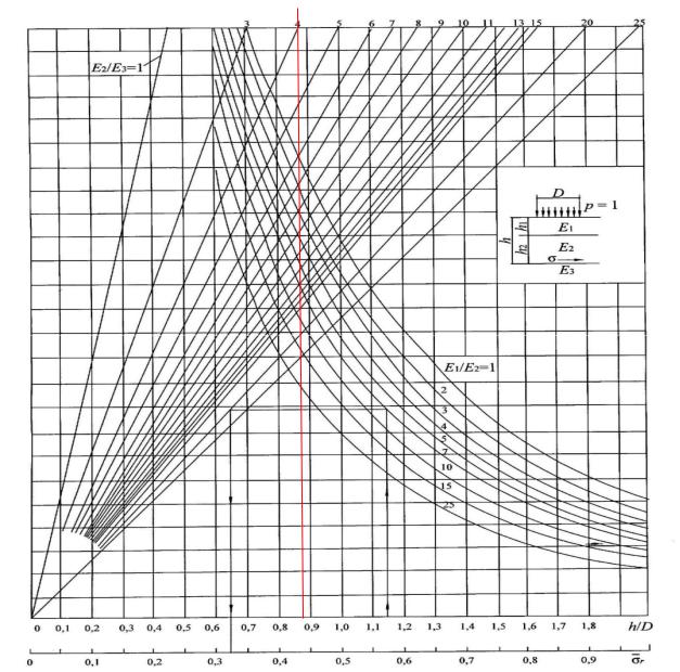 – расчетное значение наибольшего растягивающегоИнапряжения в монолитном слое основания σr находят по формуле (7.4) при коэффициенте kв, учитывающем особенности напряженного состояния покрытия, равном 1,0;