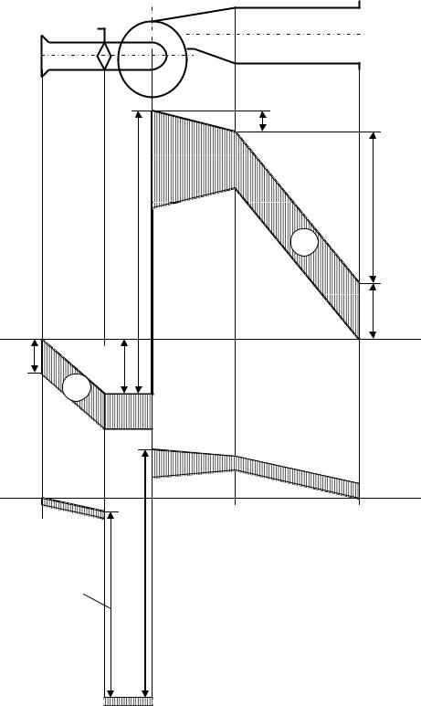 Для построения эпюр проводят линию 0 0, обозначающую атмосферное давление. Вверх откладывают избыточное давление (+), вниз